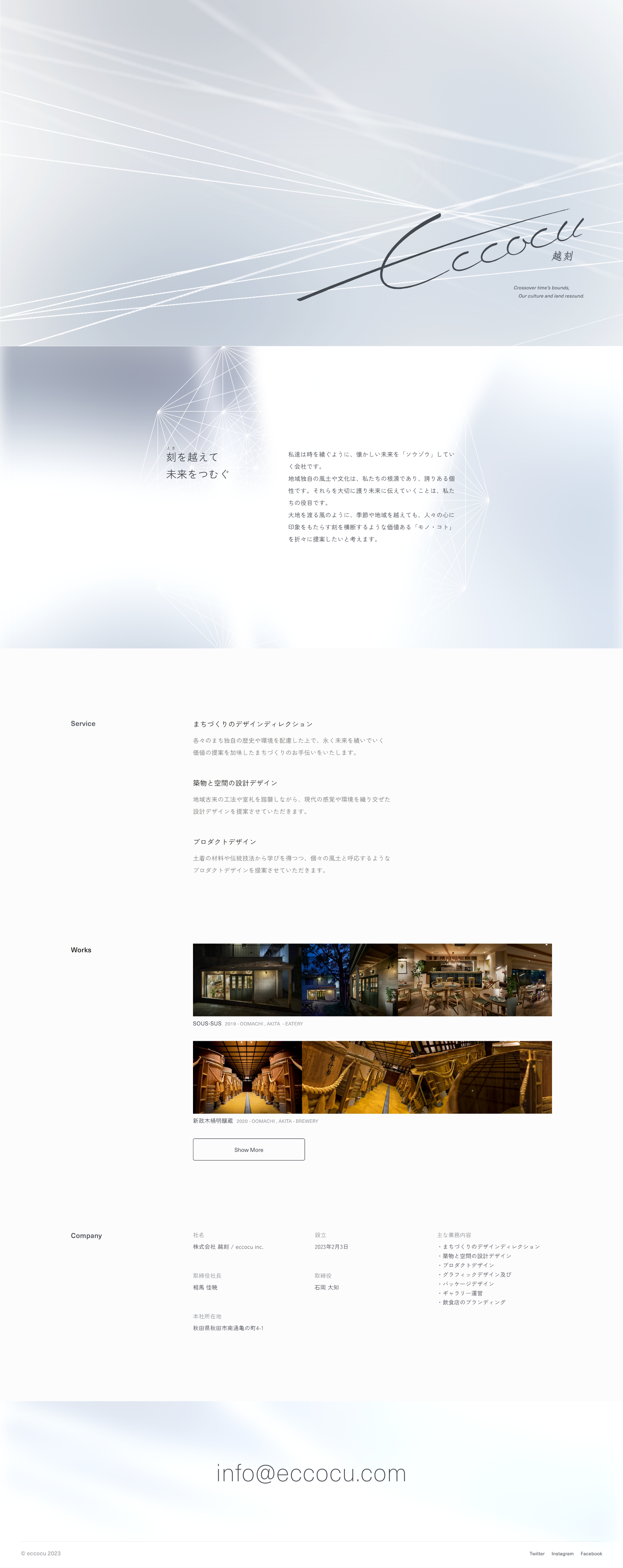 東北地方を拠点に空間デザインやプロダクトデザインなどを手掛ける越刻様の公式サイト制作を担当しました。