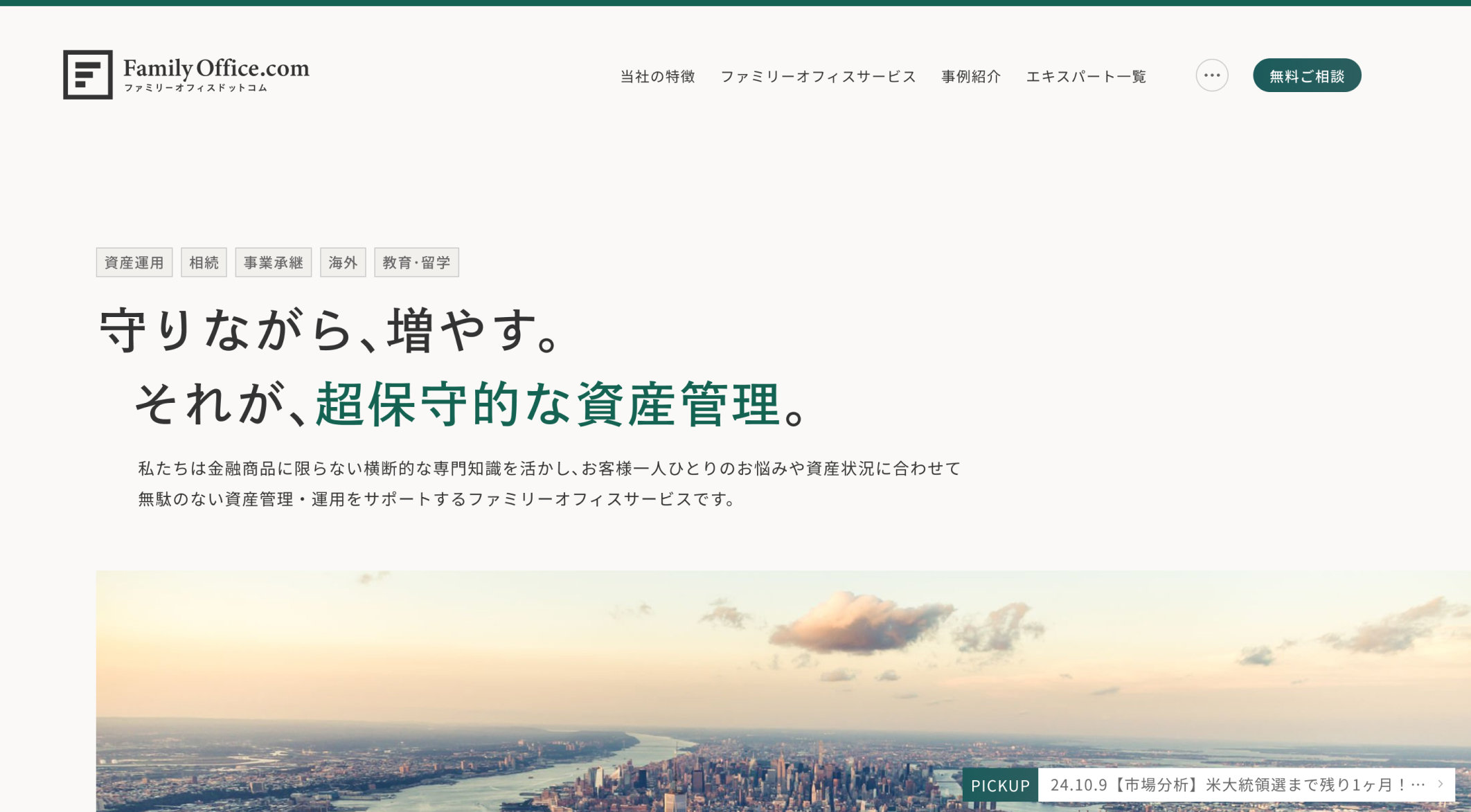 金融、不動産、保険、税務、法律など各分野のエキスパートと提携して分野を横断し、中立的な視点で資産管理サービスを提供するファミリーオフィスドットコム様のWebサイトリニューアルおよびロゴデザインをを担当しました。