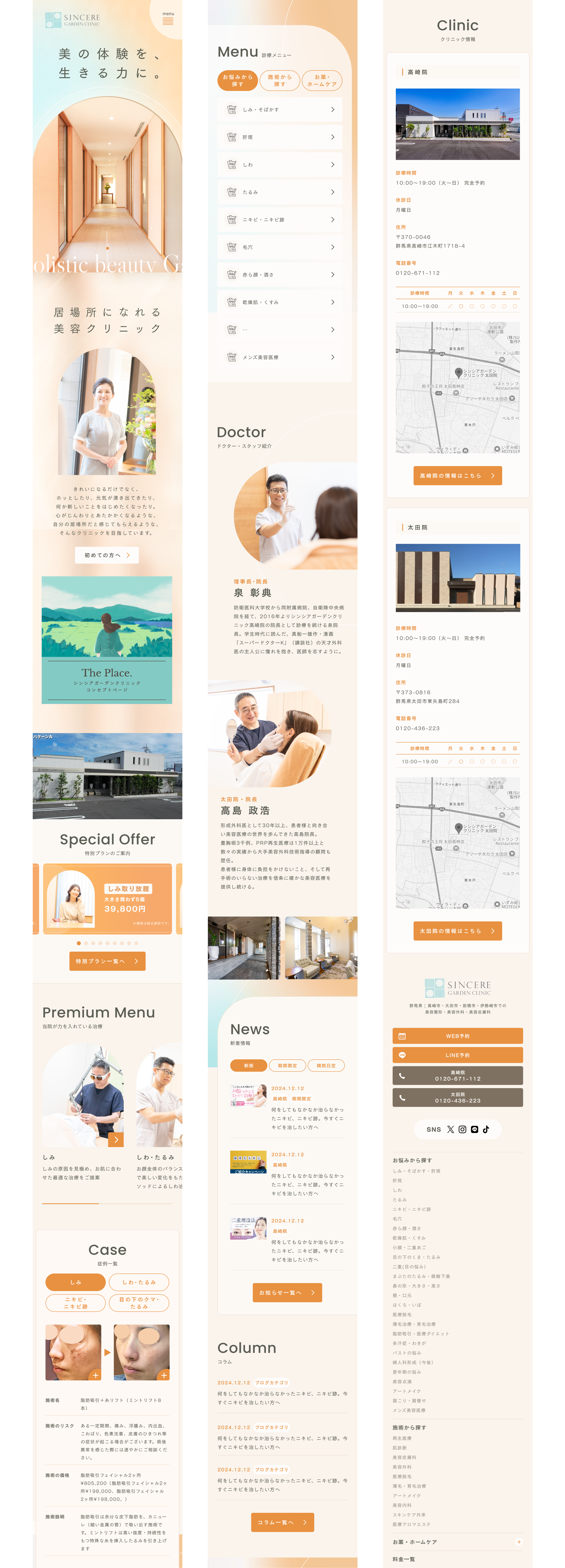 群馬県の美容クリニック「シンシアガーデンクリニック」様(以下シンシア様)のサイトリニューアルにおいて、デザインおよびメインビジュアルの実装を担当しました(2025年6月現在、TOPページまで監修)。