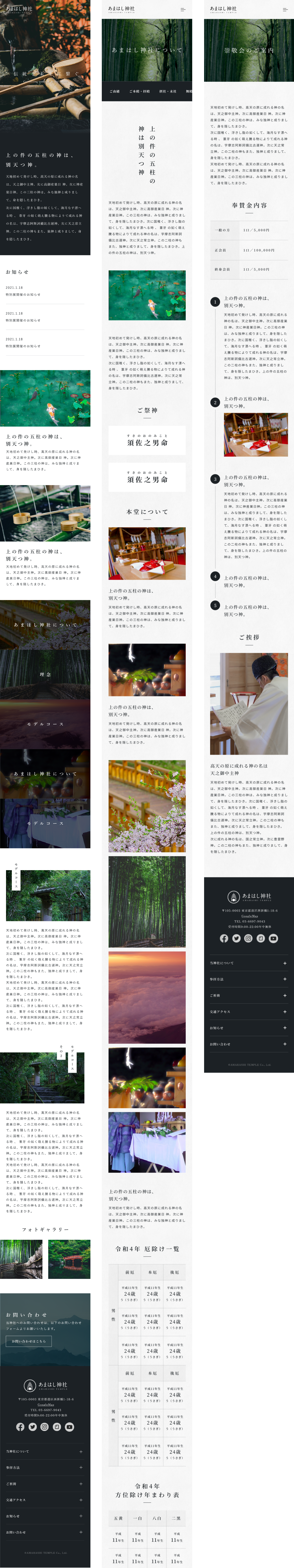 計100以上の神社サイトや和風デザインなどを参考に日本らしいデザインや神社様のWebサイトによくあるページ/パーツをピックアップしたりなど、入念にらしさの抽出を行った上で制作に臨みました。