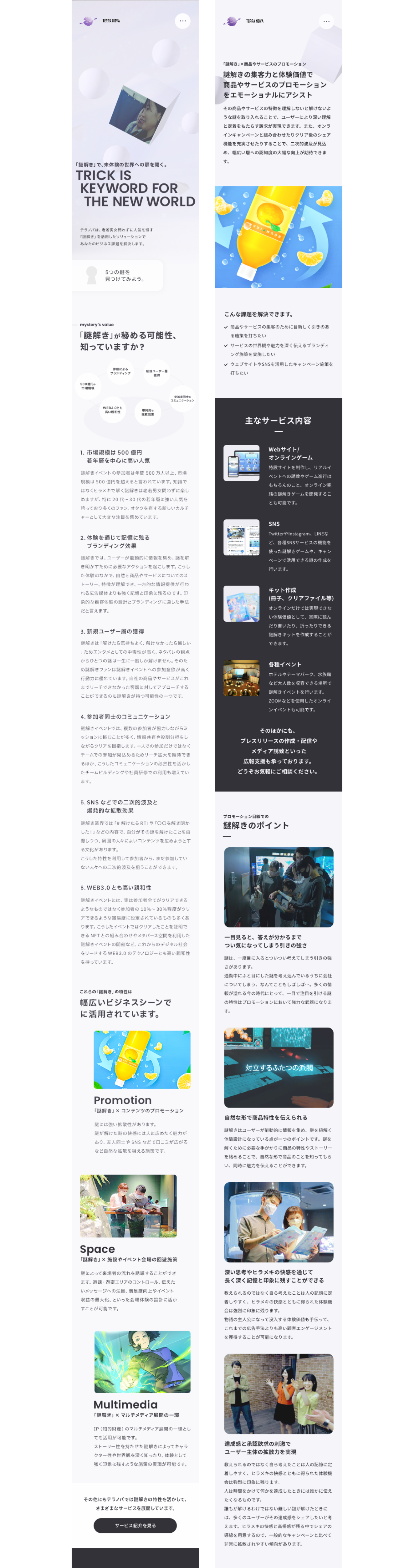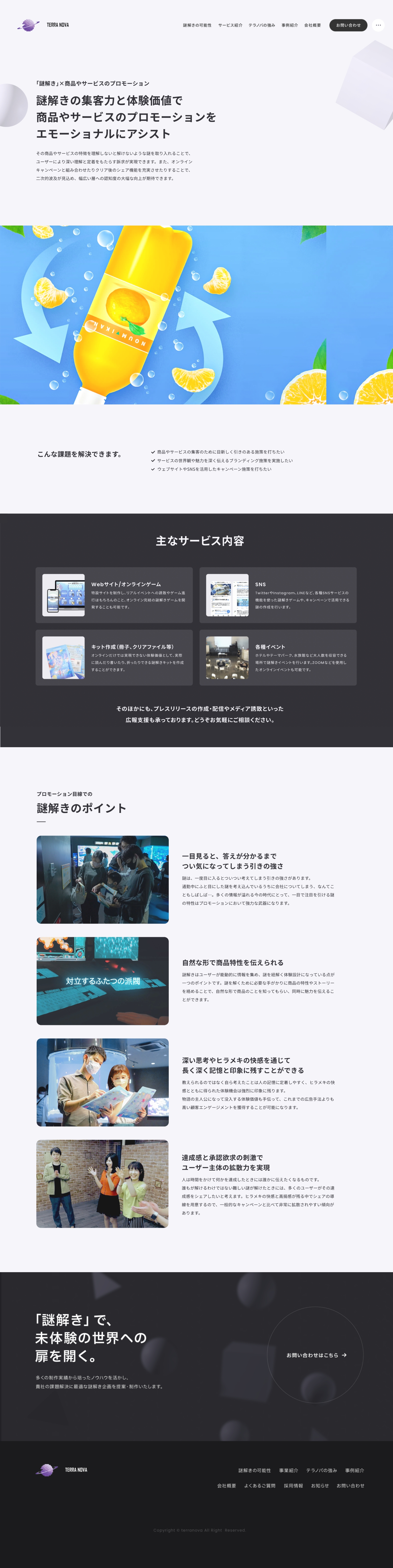 BtoB向けの謎解き制作会社TERRA NOVA様のコーポレートサイトリニューアルを担当しました。